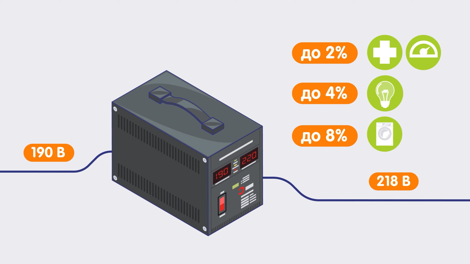- Диапазон регулирования: Обычно от -15% до +15% от номинального напряжения.