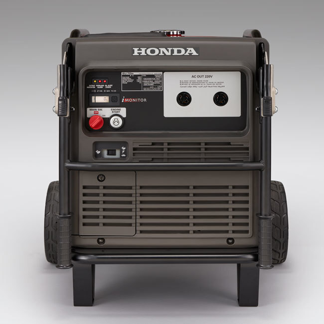 Миниэлектростанция Еu70is подходит для работ на открытой местности, которые требуют электричества высокой мощности или использование компьютеров и других электронных устройств. Жидкокристаллический дисплей «I-MONITOR», снабжает пользователя такой информацией, как время работы, мощность, обороты двигателя, и также данные тестов самодиагностики неполадок и т.д. Имеет 2 штепсельные розетки с защитой, 1 СЕЕ 16А.
